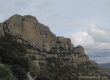 Seguimos la senda. No hay pérdida; es el G.R.-174. Pasillitos de rocas algo vertiginosas y un magnífico mirador en la revuelta más angulosa de su recorrido, antes de llegar al Collet de Sant Joan. En la misma “esquina” del mirador, un simpático y pequeño Belén han dejado en su mismo balcón. Atrás hemos dejado la Ermita de Sant Joan del Codolar; rodeada por esas grandes rocas y ese minibosque de cipreses que parece proteger al lugar de la sequedad y aridez que parece la envuelve en las laderas del Montsant. Hermoso. “¿Dónde queda la subida a la cima de la sierra?” le pregunto a Juan Carlos de vez en cuando; pues debemos coger una senda a la izquierda que suba con pendiente hasta la cima de la misma sierra, hasta el Collet de Miragüelos. Al cabo de un tiempo, y antes de que se acabe el recorrido por esta parte, ladera de la sierra, encontramos una seda bien pisada pero con la inicial cruz blanca y amarilla que nos indica que no es P.R., y que a la vez nos dice que es la senda que debemos coger para subir al lomo de la sierra. Así pues giramos a la izquierda y arriba (empinado muy a menudo siempre), sin casi partes horizontales y en un apreciable zigzag en ocasiones, hacía el Collet de Miragüelos.