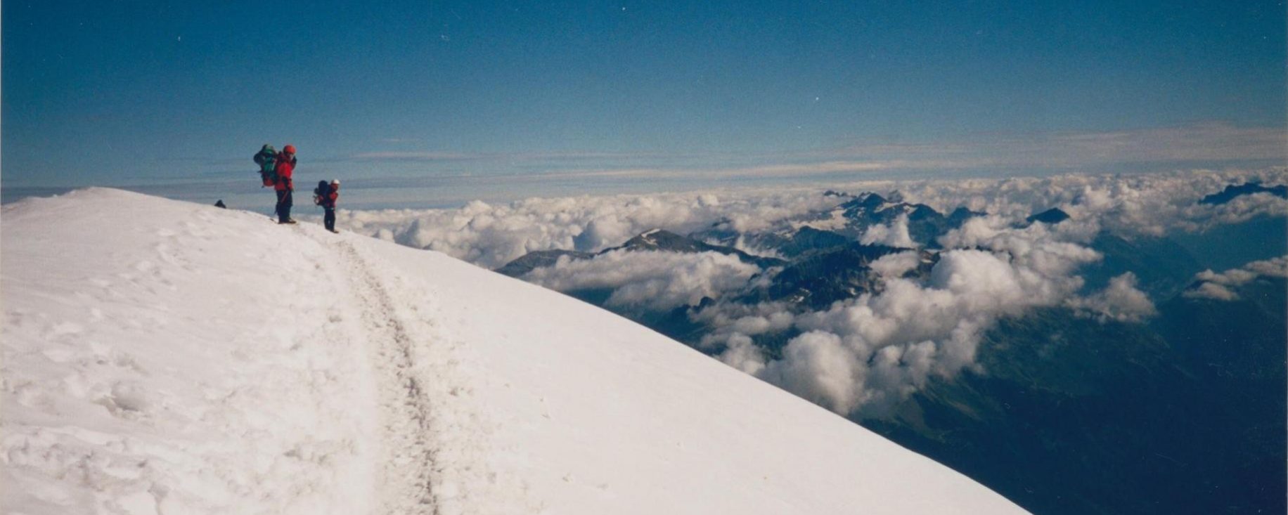 Una vez abajo, ya en Les Houches, salimos del teleférico por una puerta diferente a la de entrada. Cogimos nuestros pesados mochilones como pudimos ya que no queríamos volver a ponérnoslos encima y los dejamos en la acera de la calle. Fernando nos esperaba, hablándonos se disculpaba por su fugaz decisión y “huida” y nos intentaba explicar el agobio que le invadió allá arriba. Nos dio la enhorabuena y nos felicitó añadiendo la siguiente frase: “cuando nos separamos en la Dôme du Goûter yo sabía que lo conseguiríais. Sabía que subiríais y llegaríais a la cumbre del Mont Blanc…”. Fue algo que me impresionó ¡¿Tanto confiaba Fernando en nuestra posibilidad y fuerza de voluntad para hacer realidad lo que nos proponíamos?! Desde luego que sí, si no, no hubiera dejado a su grupo que lo veía más difícil el reto para ellos, sin embargo, aunque no conocía ni a Quique ni a Jesús hasta ese viaje, sabía que yo era disciplinario en la montaña, a la vez tenía fuerza de voluntad y que no acataría el hacer algo si de verdad no podría conseguirlo, y que elegiría a los compañeros que como mínimo tuvieran unas condiciones parecidas a las mías y que confiaran en mí. Claro está, también con cabeza, nunca nos la jugaríamos en la montaña. Esto no es que quisiera “echarme flores”, ni tener un arrebato de soberbia, es que realmente mi experiencia en montaña me hace pensar y reaccionar de esta manera. Es como unas reglas y normas que la montaña te enseña para poder tener éxito en ella con el mínimo de problemas y complicaciones por que éstos ya te los dará la propia montaña en su momento.