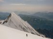 Mi mochila resbaló y fue cayendo unos metros por la excavada pendiente de tierra entre las rocas. Quería bajar ella sola sin mí. Descansamos un momento mirando a la cresta, a la próxima Aiguille de Bionnassay entre nubes, y a la última visión del alto Refugio de la Aiguille du Goûter, que quedaba allá arriba como si fuera una casita de juguete en la que el viento en cualquier momento se la llevaría fácilmente. Daba la impresión de fragilidad y precariedad comparada con la inmensidad y fuerza que la envolvía. Pero una vez arriba te dabas cuenta de todo lo contrarío; el refugio estaba bien cogido a la aguja aún estando en su borde.