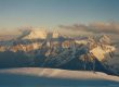 Mientras bajamos por el telesilla teníamos una bella visión del Donguzorum Pequeño con su puntiagudo pico y crestas rodeado de hielos y nieve. Las bandas rocosas se hacían más grandes y menos abundante la nieve aunque el glaciar seguía cayendo a ambos lados de la gran morrena en la que se encontraban los enormes pilares que sujetan el telesilla.