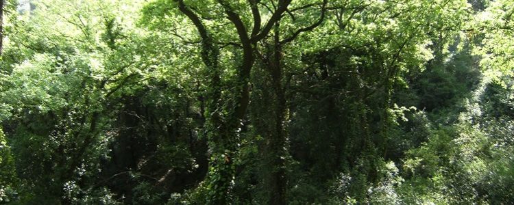 Poco antes de pasar por Ca n’Ullastrel, un camino sigue montaña adentro por la vall del Torrent de Reixac. Unas indicaciones nos dicen que por aquí iremos a les Maleses si seguimos los postes con indicaciones amarillas. Antes hemos visto y estudiado un mapa con las rutas señalizadas que rodean Sant Pere de Reixac… todo muy fácil y sin pérdida. Así que desandamos unos metros hasta la entrada de este camino que nos adentrará en el bello valle. Por un camino ancho pasamos bajo la sombra de robles, pinos blancos, encinas… altos, frondosos, hermosos y numerosos, seguimos hasta la Font dels Caçadors. Es una de las partes más bellas y verdes del parque. Al final no llegamos a la Font dels Caçadors al encontrar el cruce señalizado que coge la senda que sube al poblado ibérico de Les Maleses. Nos hemos entretenido haciendo fotos y videos por el camino, la verdad es que la espesura y vida del lugar da opción a recrearte y encandilarte con el lugar.