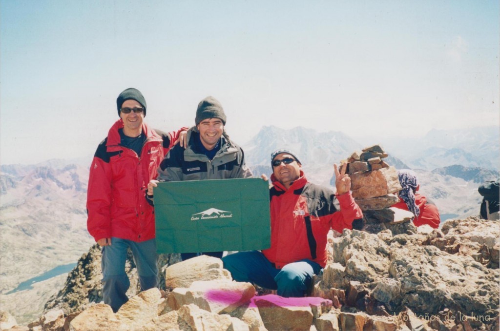 Jesús y Paco en la cima del Infierno Oriental, 3.079 mts., detrás el O Peñón a la izquierda y el Pico de Los Batanes a la derecha, al fondo más alto El Vignemale