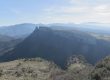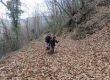 Debemos partir. Kike, en vista de lo visto, decide volver ya al coche, pero por otro camino haciendo una circular. De todas formas ya pasa del mediodía y aún debemos recoger al “rebaño”: las ovejas Cuspidianas y las agregadas. Pero a la bajada, LLuis, que se conoce el hermoso lugar, nos hará pasar por una senda donde se encuentras unas simas, “escletxas”, grietas profundas en la roca. Bajamos del Santuario volviendo a él, y dirigiéndonos hacía otro camino más ancho, que por el que subimos, bordeando la boscosa vertiente este del Cabrera. Antes una mirada a la propia sierra: hermoso perfiles, angulosos y boscosos que la marga ha dado a esta sierra con un toque original y único: como si fueran, repito, trozos de una tarta de manzana. Y sus hayedos y rincones, hermosos y vivos, le dan un toque de colorido a la grisácea tierra.