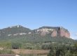 El camino gira hacía el norte. Como si fuera hacía la confluencia de ese gigantesco trozo de tarta y la carena que comenzaba en Caselles y se nos queda a la izquierda. Pronto en un cruce vemos el letrero: “Espai Natural Protegit del Collsacabra”; y seguimos por el camino detrás del cartel para internarnos en tan espectacular lugar. No paro de hacer fotos, el lugar es muy bello y único, y solo es el principio. Más adelante nos paramos en otro cruce. Tenemos noticias del resto de la gente que quería venirse con nosotros y decidimos esperarles. Cuando llegan, otros tantos, tomamos el camino de la derecha hacía una enorme masía, ubicada bajo las faldas de la grisácea sierra, con el nombre de Aíats. Ya nos vamos acercando y hago fotos del numeroso grupo que se ha formado: al final hay gente preparada y no tanto, gente que piensa que vamos a hacer un paseo por la montaña y otros que vienen a hacer montaña… a ver como sale esto. A la izquierda de la enorme casona, donde gallos y gallinas nos saludan con su asustadizo coclear, sale otro desfigurado camino, el cual, por detrás de la construcción, sube y se interna en el bosque convirtiéndose de repente en senda.