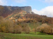 Pero después de asombrarnos con la primera maravilla de la Sierra de Cabrera, debemos seguir hacía adelante. Desandamos la senda y dejamos la casa medio en ruinas (por donde salimos desde abajo) a la izquierda, andando por la allanada cima de la sierra, por el que llaman el Pla d’Aíats, en una senda muy bien marcada en el terreno. Ahora todos, Cuspidianos y no Cuspidianos, caminamos en busca del Coll del Bram, no sin antes atravesar un magnífico y siempre bello hayedo. Se han creado varios grupos, cada uno a su ritmo, pero en ninguno falta la saludable charla montañera, que nos pone a todos al día de cómo está el mundo. En medio del hayedo, la senda comienza a bajar y perder altura. Dejamos la allanada cima para acercarnos al Coll del Bram. No hay que subirse por los terrenos pedregosos de esta roca, la característica de la misma, creo que es la sedimentaria marga, es que se deshace, se erosiona, se fractura muy rápidamente, y te puedes dar más de un resbalón intentando andar por ella. A la vez forma azuladas, grises y semidesérticas cárcavas, y en otras ocasiones extraordinarios escarpes, conjuntamente con la roca caliza, como en esta bella Sierra de Cabrera.