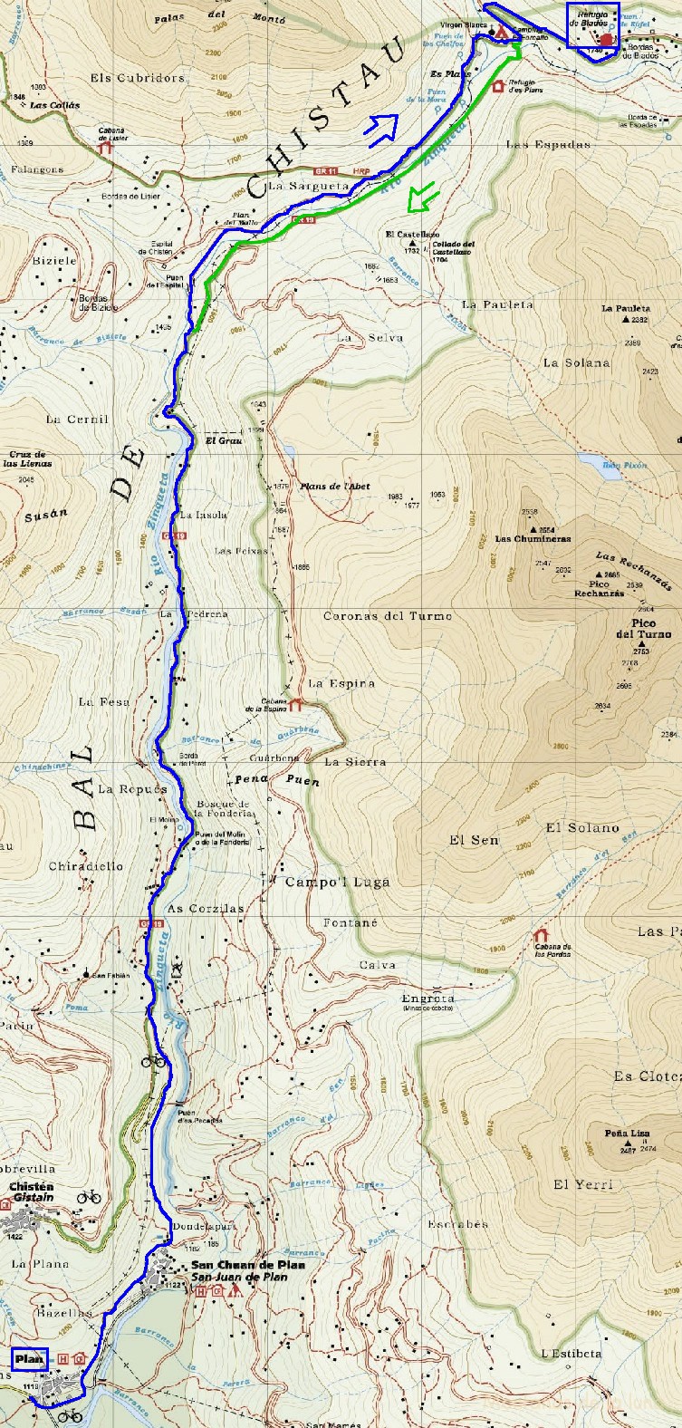 Salimos ya de Plan en dirección al bonito y pequeño pueblo de San Juan de Plan, enclavado en una suave ladera llena de prados y árboles durmientes sin hojas invernales. Ciertamente el lugar es encantador y no muy transitado ni visitado por las aglomeraciones turísticas de sus valles vecinos pero alejados, Benasque, Pineta o Bielsa. Aquel día el grupo de gente más numeroso en todo el valle creo que éramos nosotros.