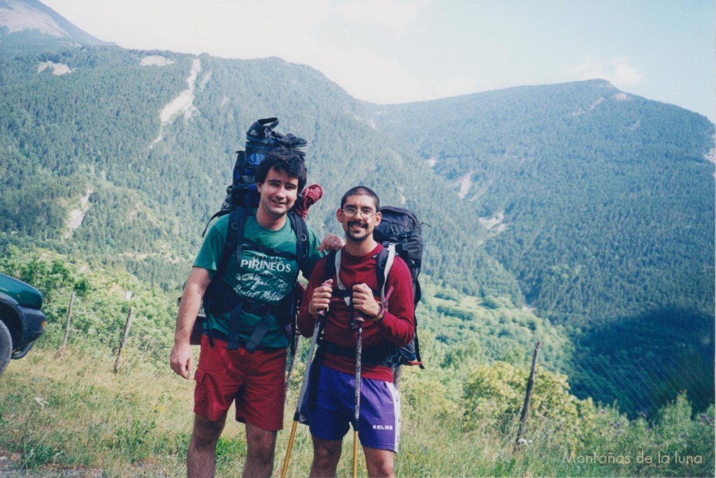 Después de madrugar y viajar durante la noche de la madrugada y la mañana, llegamos cerca o al mediodía a la entrada del Valle de Estós en el Valle de Benasque. A la izquierda del valle, después de haber pasado Benasque y bastante antes del Hospital, teníamos el cruce y el aparcamiento en el que un viejo del lugar guardaba y cobraba por tener el coche allí. Nos pareció que aquella terraza, donde se encontraba el aparcamiento, era un terreno suyo y por ello aprovechaba y cobraba por coche. Aquella parte del Valle de Benasque también era hermosa y boscosa, en la que sus poblados bosques llenaban las laderas, sobre todo, pertenecientes al macizo de los Montes Malditos.