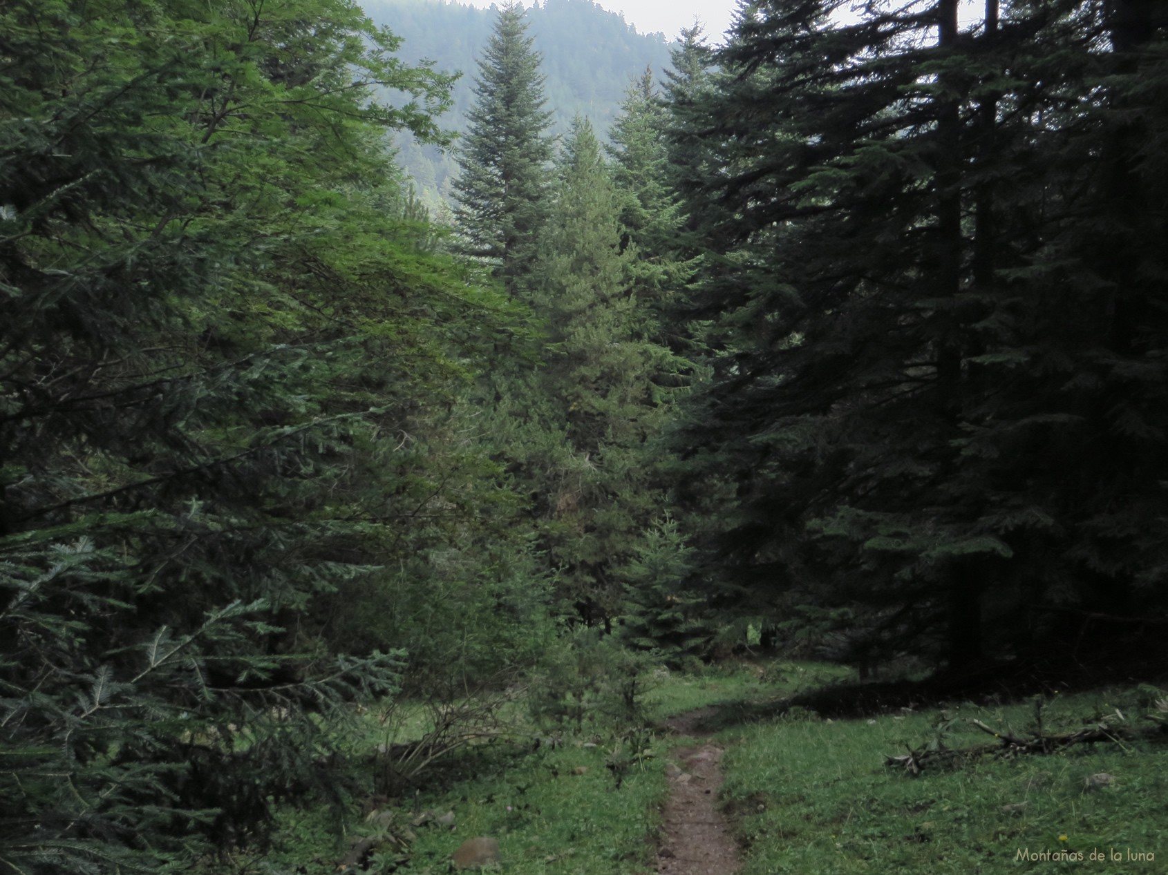 La tormenta ya aflora y comienzan a oírse, al principio lejanos, sus truenos, y a verse sus cortinas de agua que aparecen más al norte y caen implacables sobre La Cerdaña. Debo darme prisa si no también caerá sobre mí en pocos minutos. El lugar sigue siendo precioso y vivo, y a la vez poco visitado por lo que puedo comprobar por el terreno poco pisado por el que ando. Quizás solo las bestias, ganado y animalillos del bosque merodean sus rincones.