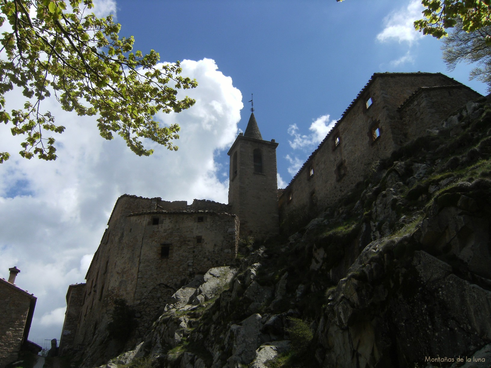 Seguimos la senda girando un poco, cambiando de ladera, y de nuevo nos internamos en otro hayedo extraordinario, mágico. La subida es latente y enseguida vemos entre las hayas los muros y camino a Sant Segimon. La senda acaba en el camino o pista que viene de Collformic y termina en las construcciones de Sant Segimon. De nuevo admiro el hayedo por el que ya pasé hace 2 años. Asombroso y hermoso. Seguimos por el camino hacia la izquierda hasta toparnos con la valla metálica de Sant Segimon. Si hubiéramos venido hace 3 días, hubiéramos entrado junto con decenas de personas… la curiosidad puede ser monstruosa y peligrosa. Los firmes y huecos muros, y el puntiagudo tejado de su alto campanario, nos invitan a observarlos, admirarlos, y a que nos surja ese gusanillo, ese cosquilleo en el estómago que hace te plantees dejar la conciencia adulta, y que salga ese espíritu aventurero, infantil y arriesgado… y hasta aquí puedo leer.