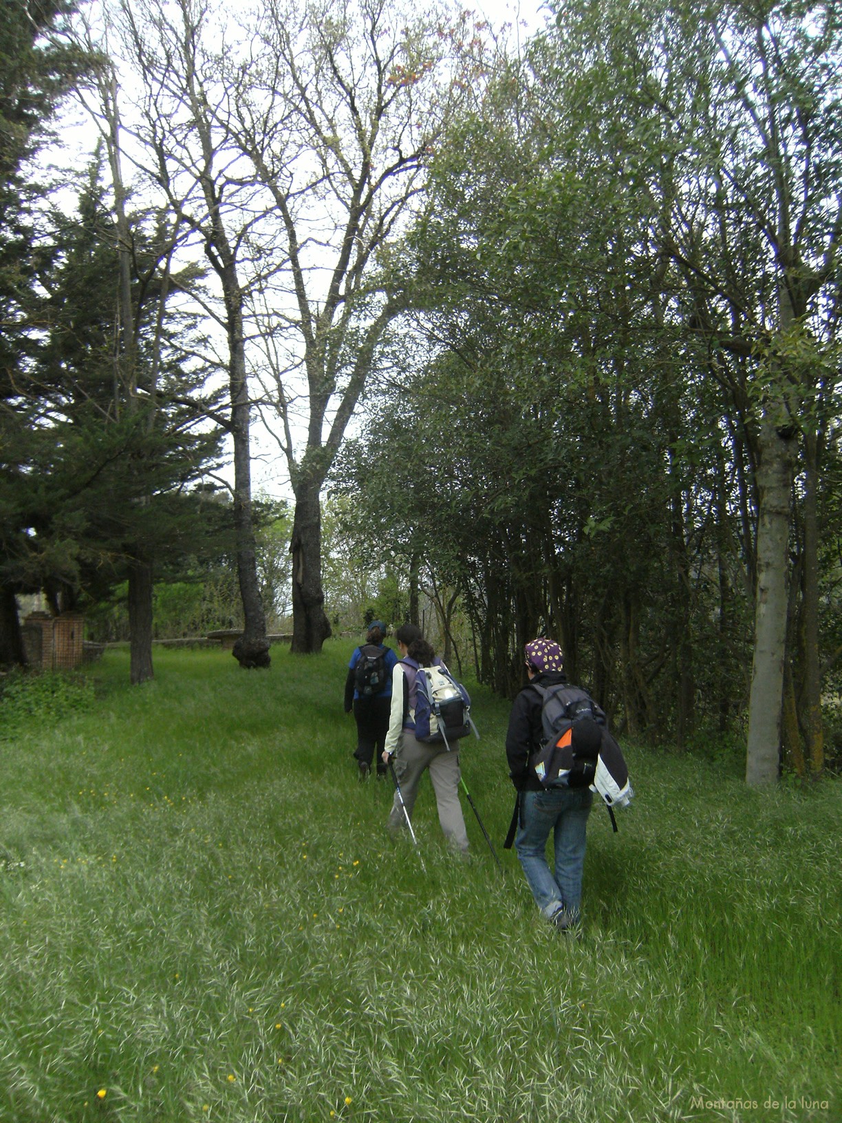 Cogimos el camino correcto. Perfecto. Llega un momento que dicho camino acaba en unos verdísimos prados. Debemos seguir por las lindes de dichos prados siempre hacía el norte. Aquí ya no hay camino. Atrás, entre la amplia ventana de vegetación que te ofrecían esos anchos prados, podíamos observar y admirar las laderas recorridas y ya dejadas del Montseny, con Sant Segimon y San Miquel dels Barretons allá arriba, dominándolo todo, y el frondoso vallecillo del Torrent de l’Oratori. Hermoso. Caminamos entre los prados como fugitivos que se han escapado de alguna prisión, con miedo a hacer ruido, a ser descubiertos. A la derecha apreciamos el agujero que forma el cauce de la riera, sin llegar a verla, rodeada de vegetación en sus motas. Lugares igualmente bellos, solitarios… de nuevo, desde la bajada del Coll de Les Tres Creus no volveremos a ver a nadie hasta llegar a La Sala. Increíble… perdidos entre la soledad de indómitas, épicas y maravillosas selvas de perfecta belleza.