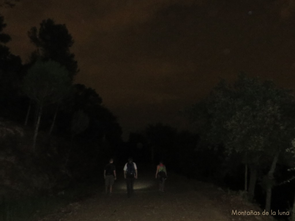 Pasadas las 9 de la noche partimos cogiendo el camino habitual al final de la calle de l’Armonia, tantas veces recorridos y descritos en anteriores relatos y guías sobre Collserola, y esta vez giraríamos hacía la izquierda en el mismo camino como si fuéramos en busca del pequeño templo de Sant Cebrià; pero eso sí, en medio de la oscuridad de la noche.