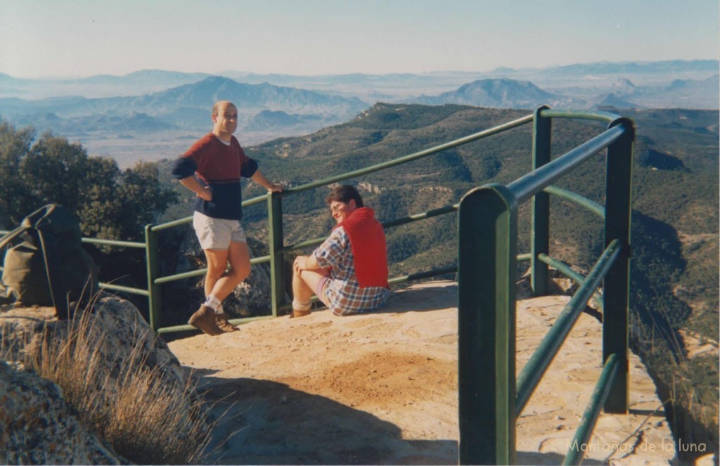 Miguel Ángel y Paco en la cima de Los Cenajos, 1.226 mts., detrás a la izquierda la Sierra de Ricote, en el centro abajo el Caramucel y todo su manto boscoso, a la derecha Sierra del Oro y Almorchón