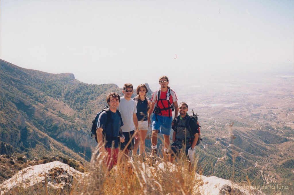 De izquierda a derecha: Joaquín, Quique, Infi, Juan y Jesús Santana en la cima de la Penya de l’Home, 1.138 mts.