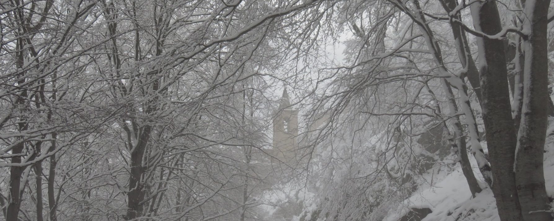 El recorrido me llevará subiendo por la senda del l’Erola en busca de Sant Segimon y poco a poco la nieve es más abundante a medida que subo en solitario por estos paisajes bucólicos. Pasado el Oratori y justo antes de llegar al hayedo de Sant Segimon, la abundante nieve sobre las ramas y matorrales de carrascas, encinas y otros árboles, arbustos, hace que éstas se doblen entorpeciendo el avance por la senda justo en este tramo. La blancura de esta nieve junto con la blancura, gris de las nubes que quieren amenazar con más precipitaciones, con más nieve o lluvia, hace que parezca una verdadera ruta invernal, propio en estas fechas de las altas cordilleras peninsulares.