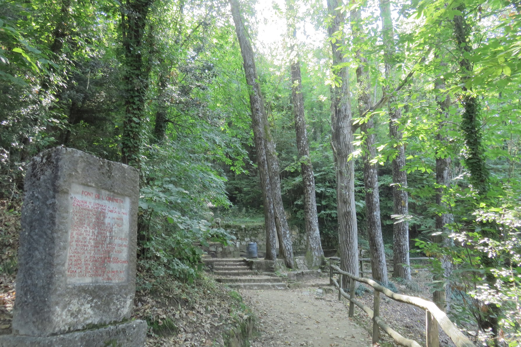 Lo único es que justo antes de llegar a Viladrau, y una vez ya bajo por el camino que viene de Resquelles, con la urbe de la población delante, me desvío en una sendita señalizada a la izquierda hacia una fuente famosa en la población: La Font de l’Oroneta. Para darle un toque romántico final a la actividad del día.