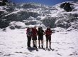 Estamos alegres, contentos, no sé si por la espectacular actividad realizada o porque ya no tendremos que subir allá arriba con lo lejos y duro que resulta esta montaña, esa cima… la cuestión es que, cargando con nuestras mochilas, bajamos por los hitos y seguido por la senda en medio de aquella antigua y pequeña morrena, hasta las puertas del mismo Refugio de Monte Rosa. Infi ya nos estaba esperando.