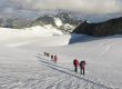 Recorriendo un trozo del Glaciar Grenx, delante Leti, a la derecha el Liskamm y Refugio de Monte Rosa casi invisible