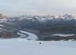 Podemos observar la huella de subida a Sattel y a la Dufourspitze sobre el Glaciar del Monte Rosa (en el centro), a la izquierda el Nordend
