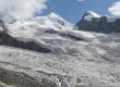 Llega un momento en que el recorrido cruza una especie de espolón, loma cimera o morrena que separa la zona del hueco del lago bajo los restos del Glaciar del Monte Rosa de la zona por el que transcurre y baja el Glaciar Gorner. El cual viene de la parte norte de la ladera del Nordend, un gigantesco y amplio plateau en el que recogen todos los hielos y nieves del lugar, y los impulsa y baja gracias a su peso y gravedad, por el vallecillo que cierra la cresta, la loma cimera de Gorner, Gornergrat… allá al fondo ya vemos la formidable lengua de hielo del nombrado glaciar.