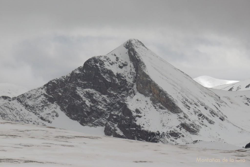 Y una vez de nuevo en la Portella de Morens, 2.382 mts., deshago lo andado, lo caminado, desde el coche hasta aquí. Ya a la izquierda me quedará lo que yo creí era el primer pico de la travesía y de los 4 picos de Coma Ermada que yo quería hacer: la cima oeste o falsa cima rocosa del Pic de Coma Ermada, con toda su loma suave con neveritos, tierra, o nieve, según le haya dado el sol, el viento o se haya derretido el blanco meteoro.
