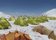 Hoy es el día elegido. Día de ataque; día de cumbre; día de éxito y culminación de un objetivo, de un sueño, de un desafío… Madrugamos como habitualmente se hace en la alta montaña y nos levantamos a eso de la 1’30 de la mañana. Casi en silencio nos vestimos y preparamos como si de un ritual de concentración se tratara, sin preguntas, sin dudas, sin comentarios del caso sobre la montaña, sobre el tiempo, sobre la dificultad y el supuesto éxito de nuestra empresa… solamente nos colocamos el peto, abrigos, chaqueta, botas, arnés… y desayunamos en la total oscuridad de la madrugada. El resto de grupos parece que no se han levantado aún, o lo hacen poco después que nosotros. Todos intentaremos hacer cumbre hoy.