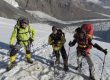 Entonces llegamos a uno de los momentos de la subida y del viaje que más difícilmente tardaría en olvidar: en medio del intenso frio Lucio decide equipar la vía, la ladera empinada o pared del glaciar, clavaria una serie de tornillos de hielo (las estacas no se pueden utilizar aquí) y montará una reunión justo en el punto donde le deje la cuerda, todo lo largo de la cuerda. En el otro extremo estamos atados Jesús y yo. Y en una pequeña cornisa del glaciar esperamos inmóviles mientras observamos como Lucio con la cuerda cogida va subiendo sobre nuestras cabezas, recto sin zigzag y clavando el tornillo de hielo cada cierta distancia (para mi excesiva), y lo vemos desaparecer en la curvatura y sombras de la misma ladera del glaciar ¡¿Cuánto tardará?! Nos hará una señal con la cuerda para que una vez montada la reunión, subamos los dos a la vez siguiendo la cuerda.