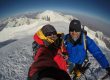 Vamos con cuidado pero con paso firme. Los crampones se agarran y se clavan muy bien a este hielo vivo. La progresión es constante y a buen paso. Por suerte y a pesar del frío el tiempo es excelente. Ni una nube. Con una visibilidad algo abrumada por el filo del horizonte. Llegamos hasta donde está Lucio. Éste recoge el material de Jesús y se dispone a realizar otro largo de la misma manera. Por suerte este será más corto y la espera ya no será tan larga, ni el frío tan intenso, ni la desesperación anterior hará acto de presencia. Casi no me da tiempo a contemplar el lugar, el paisaje, vamos prestando atención y casi de bólido, pero algo me dice que estamos más cerca de la cima de lo que creía.