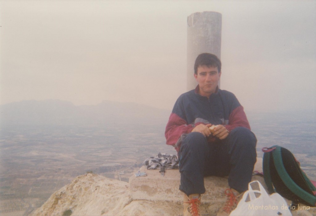 Joaquín Terrés en la cima del San Cayetano, 817 mts. detrás a la izquierda el Monte Alta, en el centro el puerto del Hondón, al fondo Agudo y Zulum
