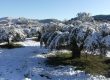 Pero nosotros seguramente desandamos el camino recorrido en busca de Fontalbres. Por ello una vez desandamos el recorrido realizado y bajamos del Alt de La Creu de nuevo a la pista o camino desde el que subimos a este pico a la ida, en lugar de buscar la siguiente cima, lo que haremos es seguir por la misma pista hacia el suroeste y oeste, pasando por la caseta aquella junto a una especie de balsita de agua, y que es el camino que rodea la montañita a la que también llaman los mapas Alt de La Creu pero es de más baja altura… si nos liamos podemos seguir las marcas blancas y amarillas del P.R. CV-55 que recorren esta pista, pero hacia el oeste, suroeste, en busca de Fontalbres.
