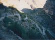 De nuevo cogemos el cordal cimero viendo las dos vertientes de la sierra. Estamos subiendo a (otro) Alt de La Creu, a 1.192 mts., el más alto de los dos nombrados. Hemos llegado a la cima con la dirección noreste, ahora cogiendo dirección sureste y por una senda más estrecha pero marcada, nos baja de esta cima por la ladera casi contraria a la que hemos subido, hasta las cercanías de un camino de herradura, justo cuando hace una cerrada curva, pero en lugar de coger la dirección hacia el noroeste, lo cogemos hacia el noreste, hacia la cima de esta parte de la sierra que tenemos enfrente.