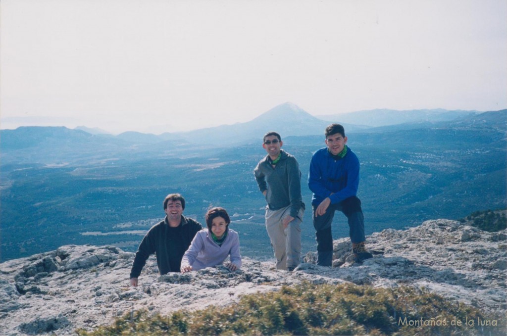 De izquierda a derecha: Joaquín, Infi, Jesús y Quique en la cima del Alto de Las Cabras, 2.081 mts., con La Sagra detrás