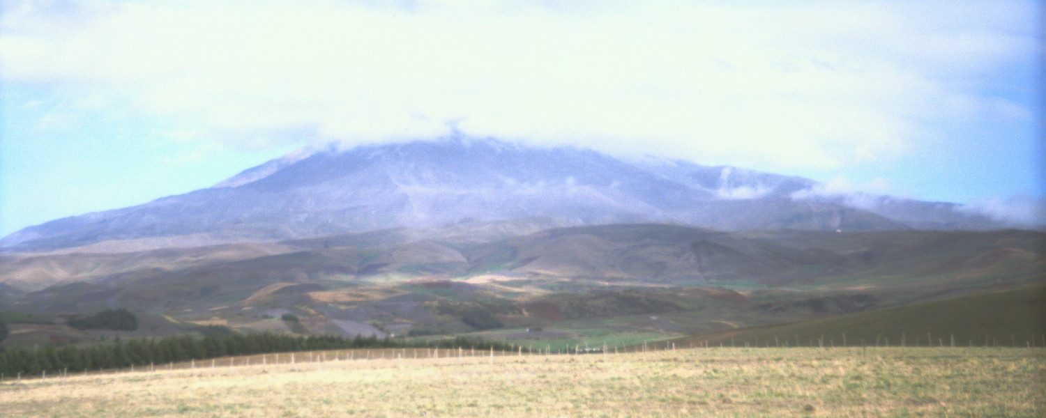 Tomamos el sol a la puerta de la casa mientras nos avisa Rodrigo para bajar en coche a Riobamba. Nos enseña la casa nueva, el jardín botánico de 70 especies y unas chozas tradicionales. Las nubes aunque lejanas no dejan ver las cimas pero sí la base del Chimborazo. Ya conseguiremos verlo uno de estos días. Entre tanto el Tungurahua sigue pegando petardazos y siguen cayendo cenizas. En un principio el Chimborazo estaba cubierto enteramente y a partir de mitad de su falda para arriba ya no se veía anda, incluyendo los glaciares y sus laderas que los rodean. No era la típica nube de viento que cubre las altas cimas de las grandes montañas ocultando la cumbre, mientras que el resto de paisaje, montañas más bajas y cielo está despejado. Esto hoy no era el caso, aunque es algo que ocurre habitualmente por la prominencia de la montaña con respecto al resto de alturas y montañas. La única montaña que le podría hacer algo de sombra al Chimborazo pero que se encontraba a bastantes kilómetros de distancia, era el Cotopaxi, y sin embargo seguiría siendo más de 400 metros más bajo. Si lo comparamos con las montañas más cercanas, y aun así separadas considerablemente, Sangay, Carihuayrazo, Altar… la diferencia es de alrededor de 1.000 metros con respecto a la cima más alta, con lo que la prominencia del Chimborazo es espectacular, increíble, exagerada, con respecto al resto del paisaje.