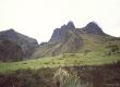 Siguiendo la vista con la dirección de las vías del tren que hacen una perfecta curva, al norte, noroeste desde la Estación de Urbina, descubrimos una escarpada montaña, picuda y destacable en la lejanía, con escarpes verticales y varias cimas con formas de pináculos o torres, tres cimitas así. No es tan alto como el Chimborazo pero tiene un semblante, un perfil más desafiante y espectacular, menos amigable: es el Carihuayrazo, otra montaña que supera los cinco mil metros y, como ya he descrito, es de las montañas que rodean Urbina. Preciosa… aunque hoy es invisible a la vista al estar tapada por las nubes bajas, como el Chimborazo.