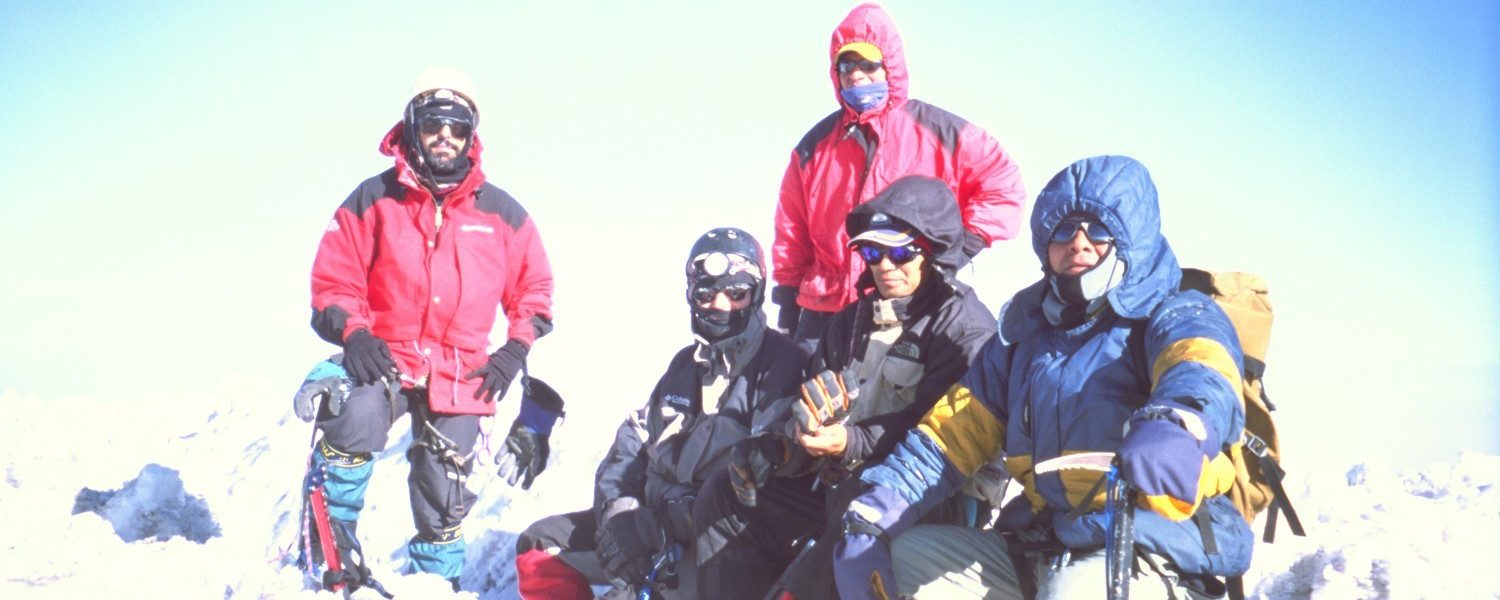 Cima Whymper del Chimborazo, 6.310 mts., de izquierda a derecha: Jesús, Fabian, Joaquín, nuestro guía Eloy y ¿Don Eloy?