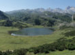 Al llegar al collado ya vemos la parte norte en caída, en bajada del macizo occidental de los Picos, la alta montaña queda a nuestra espalda y derecha, al este,… incluso descubrimos una de los Lagos de Covadonga, el de La Ercina, y casitas más cercanas allá abajo, entre el lago y nuestra ubicación, de la que una de ellas es el Refugio de Vegarredonda.