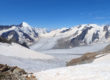 Y mientras los compañeros se decidían para venirse unos días a los Alpes, yo organizaba el viaje, la actividad. Quería volver al Glaciar Aletsch. Esa impresionante, larga, ancha, lengua glaciar con recorrido de unos 23 kilómetros y con esos rincones como Konkordia, Jungfraujoch, esos picos excepcionales como el mismo Aletschhorn, Jungfrau, Mönch… altivos, preciosos y espectaculares… tenía que volver antes de que el cambio climático destrozara y deshiciera, fundiera, más aún el hielo del glaciar.