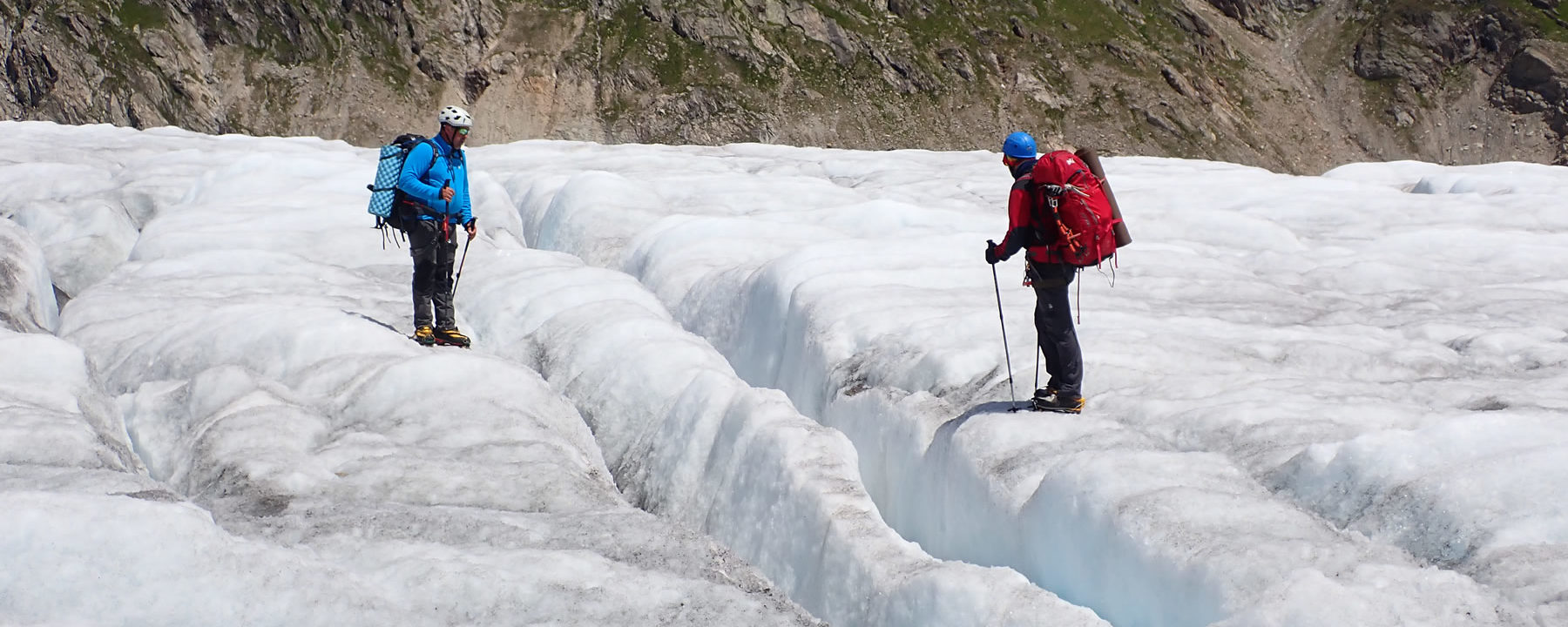La idea era seguir los pasos de hace 5 años y, saliendo de Fiesch, llegar al Refugio Konkordia, intentar hacer una montaña, y después subir por el mismo glaciar hasta su nacimiento en el Jungfraujoch, ir al Refugio del Mönchjoch y ascender otra montaña desde este refugio. Después había ideado bajar por el famosísimo tren cremallera del Jungfraujoch hasta Grindelwall o Interlaken, y volver a Fiesch, igual que lo hicimos en aquella vuelta hace 5 años desde Grimselpass por el simpático tren suizo… pero Manolet decía que no, que la vuelta en tren sería un lio y que había que salir por el mismo punto por donde habíamos entrado, también dejamos de ir a un refugio que se acercaba más a uno de nuestros objetivos alpinos, con lo que tendríamos que intentar ascender el Aletschhorn desde el Refugio de Konkordia. Y desde el Refugio del Mönchjoch, ascender al muy visitado Mönch (El monje), volviendo por todo el glaciar hacia abajo hasta el punto de partida, Fiesch… hasta incluso habíamos programado algún vivac en la bajada en pleno glaciar, si no llegábamos a la localidad mencionada… ¡para qué habré hecho caso a Manolet!… pero realmente solo fue uno de los muchos condicionantes que hicieron de este viaje “extraordinario y especial” … no llegó a ser desastroso, pero también se podía calificar algo de esta manera…