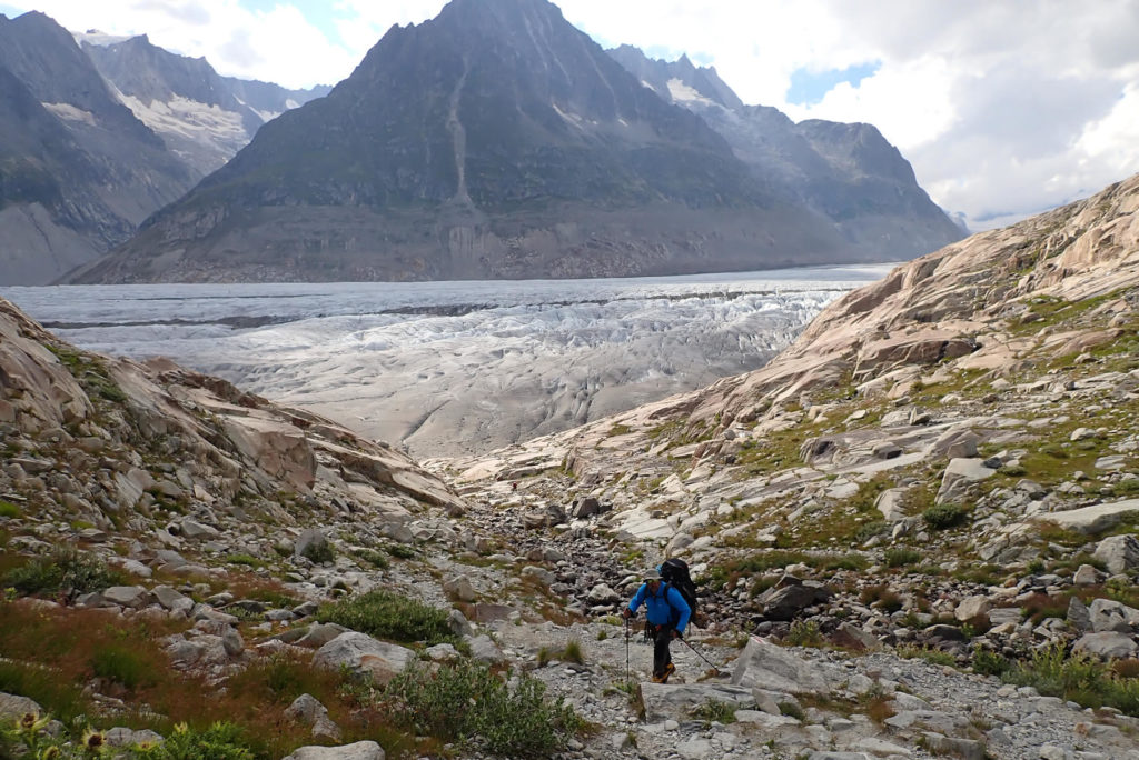 Al llegar al camping y acercarme a Manolet que estaba junto al coche y remolque, le comento “si hubiese tenido que andar una etapa más, no lo hubiera podido hacer”. Tobillos hinchados, talones en carne viva al quitar los Compeed… un desastre. Pero al menos y a pesar de todo, pudimos recorrernos este fabuloso y magnífico Glaciar Aletsch, con los impresionantes y anómalos días que hemos pasado de buen tiempo, y una experiencia que espero nos sirva para más adelante, no tener los mismos fallos, esa soberbia de querer hacer lo que nuestro nivel o conocimiento del lugar, nos permita, y no pensar que lo podemos todo. Aún así ha sido una actividad única con el mencionado glaciar como protagonista, recorriéndolo desde su nacimiento hasta casi su desvanecimiento valle abajo. Extraordinario y vivo… aunque estoy pensando que tardaré unos años en volver a él de nuevo… ¡Quien sabe!