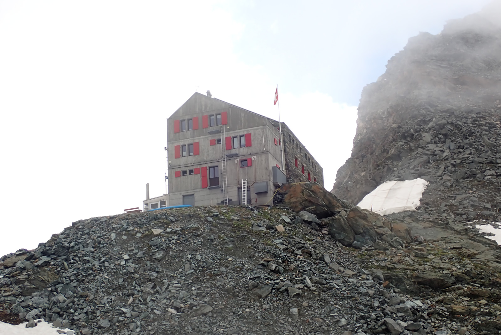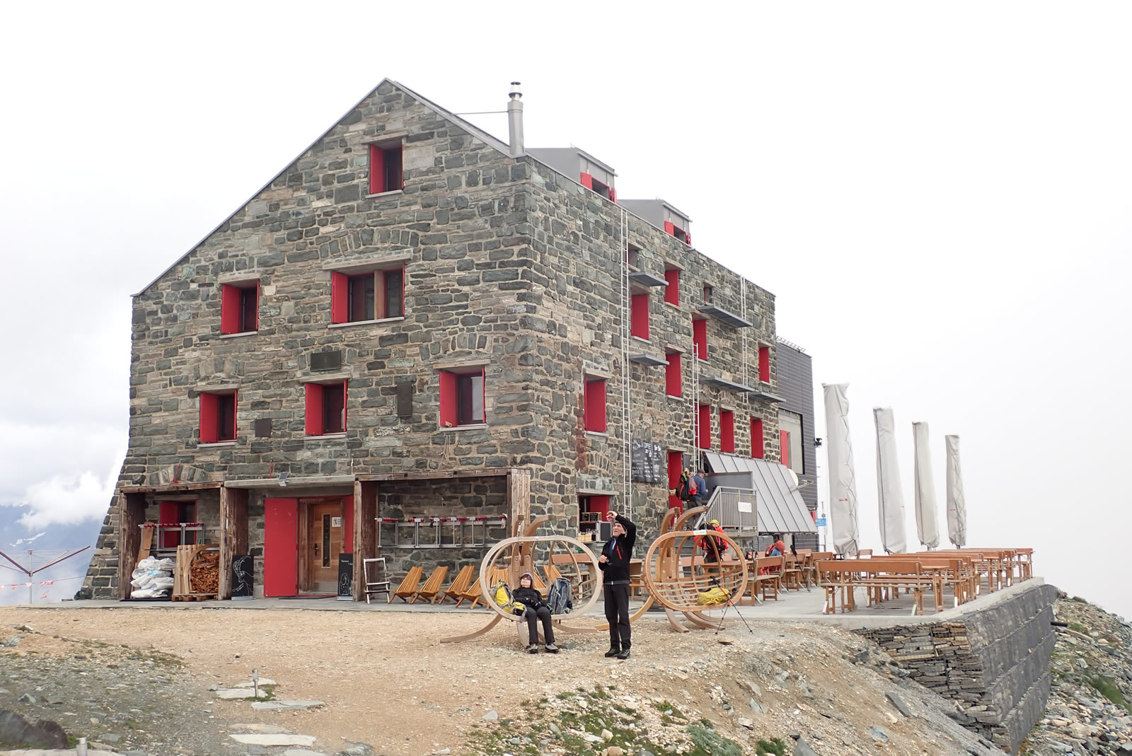 El edificio es grande y formidable, hay varios guardas, uno de ellos se llama Max, habla un poco de español, y será el que nos explique cómo es la subida al Allalinhorn desde aquí. Tiene dos plantas y mucho espacio, con dos comedores, habitación para dejar los hierros y botas, y literas o camas espaciosas y separadas unas de otras… como es un lujoso refugio suizo, ya descrito también en la subida al Refugio Hörnli.
