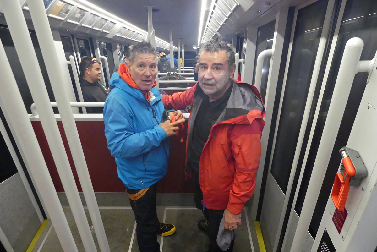 Francesc y Joaquín bajando por el Funicular, «Metro», de Mittelallalin (3.456 mts.), bajando a Fleskinn