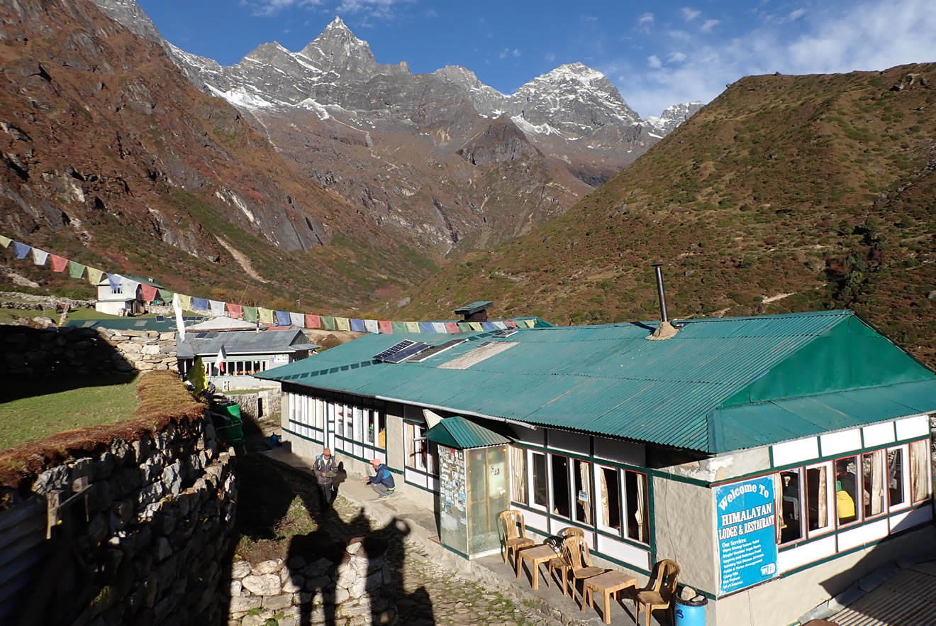 Yo quería lavar la ropa de verano utilizada en las primeras etapas, pero hay que lavarlas uno mismo a mano, y decido dejarlo para otro Lodge. Observo a alguno que está lavando su ropa en una especie de bidón, palangana, sin sol, con la temperatura tan baja… incluso decido no lavarme ni yo mismo, y usar las toallitas si hace falta. Los lodges de Dhole y Machhermo no eran como los de Namche Bazar, a pesar de que sus duchas eran mínimamente cómodas pero frías, no era lo mismo en estas dos últimas poblaciones. Ya hace más frio a la hora de dormir, con lo que abro el saco de plumas, al final me lo tengo que echar por encima que he pasado calor. Todos los lodges tienen edredón de plumas. Como siempre comparto habitación con Jordi; mientras que Dolors y Luis comparten otra… espero que Jordi no se asuste con mis ronquidos cuando me duermo con la nariz taponada. Al otro día toca subir a Gokyo y ver sus famosos lagos, uno de los atractivos y puntos obligados de este trekking.