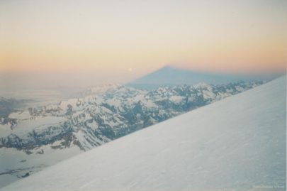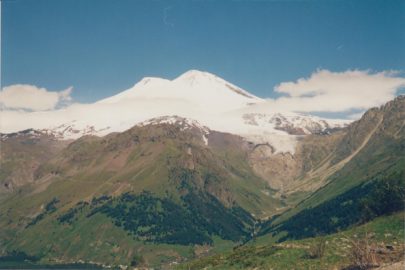 Viaje a Moscú. Madrugamos para desayunar a las 8 h. y cargar las mochilas a las 8:30 h. en una furgoneta para dejar Terskol por todo el Valle del Baksan (primero glaciar y luego fluvial). El paisaje es de una exhuberancia sobrecogedora, prados y pinos, abedules… El día es lluvioso y la furgoneta avanza…